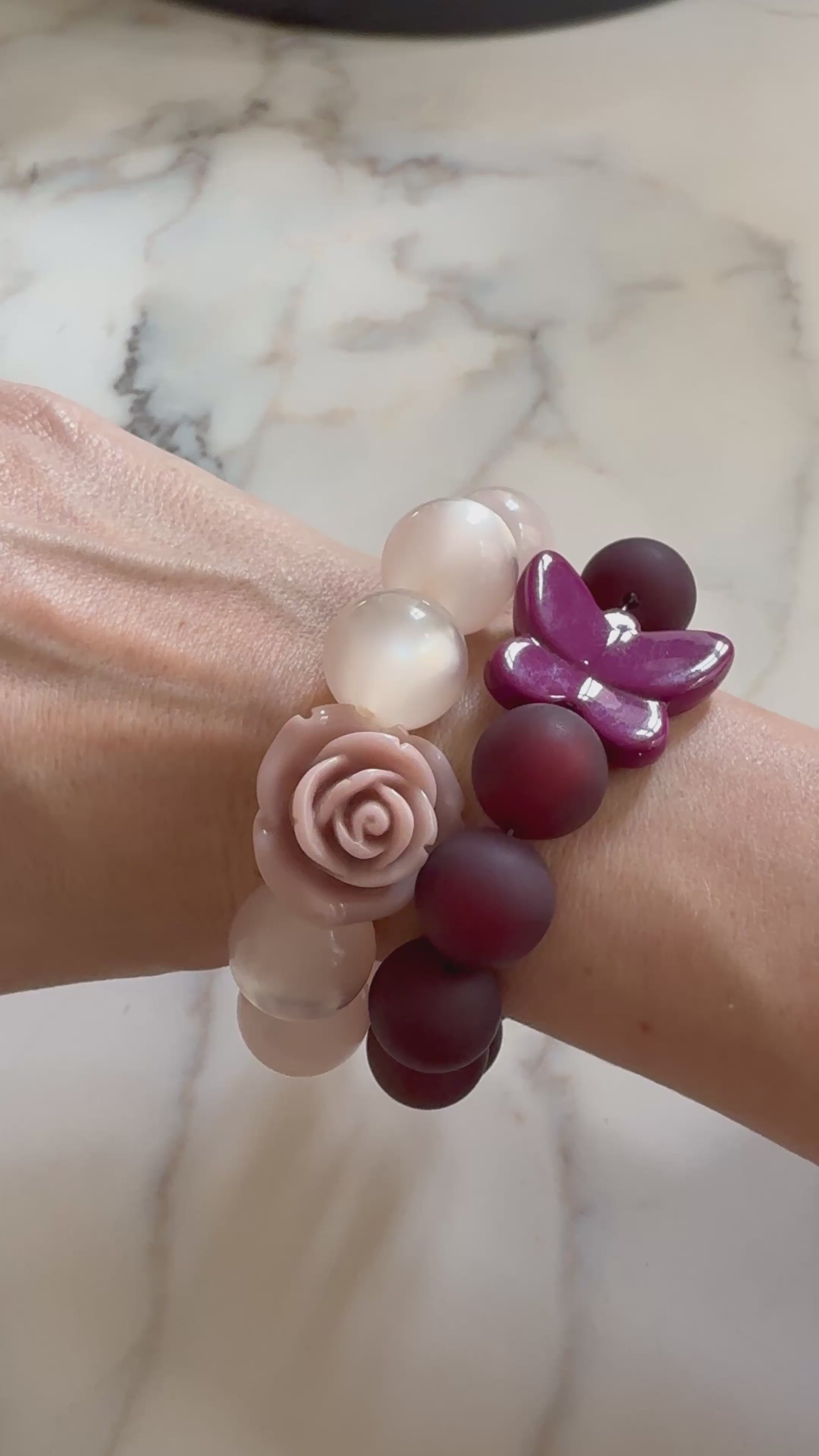 BRACELET BY GIGI: PERLES GIVRÉES PRUNES ET PAPILLON PRUNE